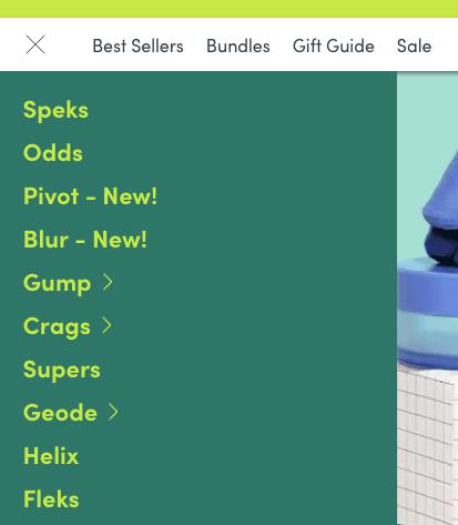 Let’s look at Speks, maker of fancy fidgets, and their nice, clean website and its sparkling mess of information design. [Hey, listen: the night before I went to hit Send on this newsletter, Speks actually changed a bunch of stuff on their site. Most of this essay still stands, but, yeah, some things are different now. I can only assume Speks hates me personally and wants me to suffer.]